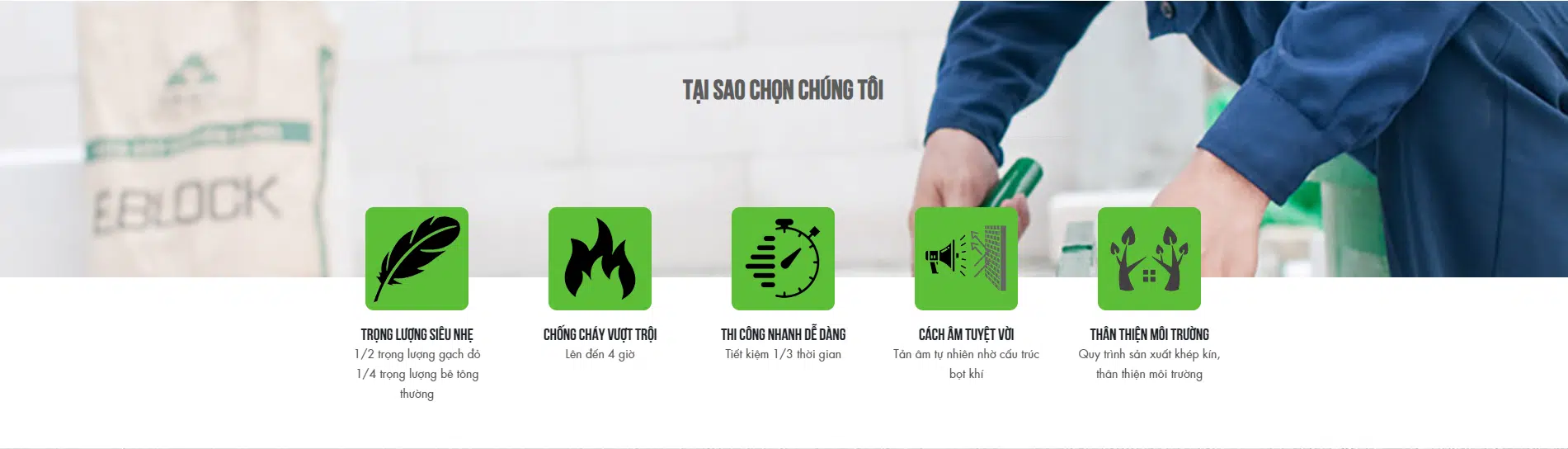 Là đơn vị tiên phong giới thiệu công nghệ bê tông khí chưng áp (AAC) tại Việt Nam từ 2005, các sản phẩm gạch bê tông nhẹ, tấm panel, tại miền trung và các tỉnh tây nguyên đã đáp ứng tiêu chuẩn TCVN 7959:2017 và được khuyến khích sử dụng bởi Hội đồng Công trình Xanh Việt Nam.