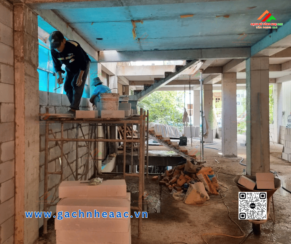 Một trong những công trình gạch nhẹ tiêu biểu miền Trung được thi công gần đây là dự án tại Trung Nữ Vương – TP. Đà Nẵng, sử dụng gạch AAC 600x200x100mm làm tường ngăn. Đây là công trình mẫu thể hiện rõ ưu thế của bê tông khí chưng áp trong thực tế thi công: