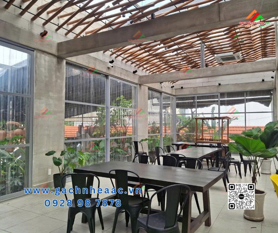 Quán Coffee hiện đại Quận Tân Bình với điểm nhấn gạch nhẹ AAC 600x200x100mm.
