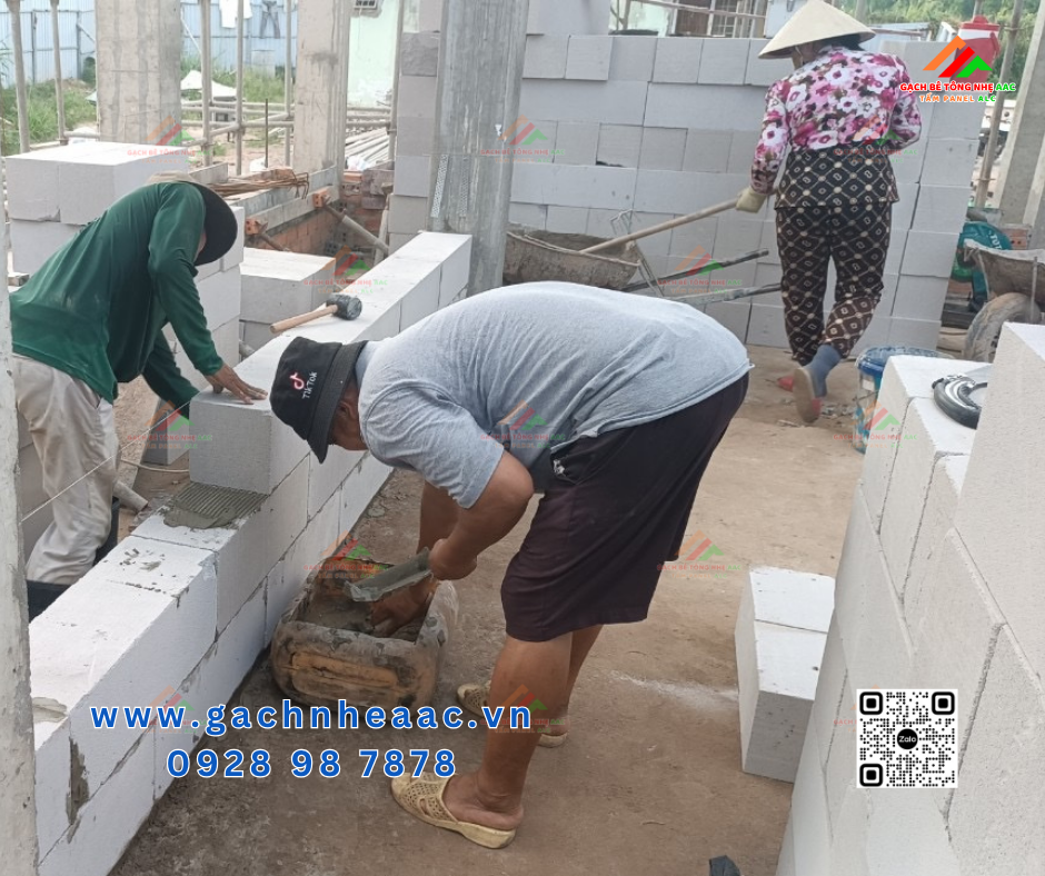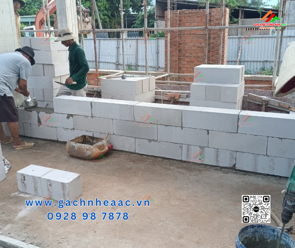 - Vật liệu: gạch bê tông nhẹ khí chưng áp (AAC), KT 600x200mm