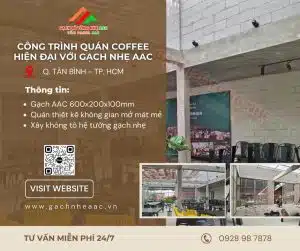 Quán Coffee hiện đại Quận Tân Bình với điểm nhấn gạch nhẹ AAC 600x200x100mm