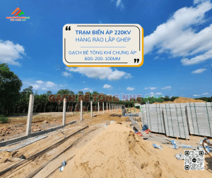 Xây dựng hàng rào Trạm biến áp 220kV với gạch nhẹ AAC – giải pháp an toàn, tiết kiệm và bền bỉ.