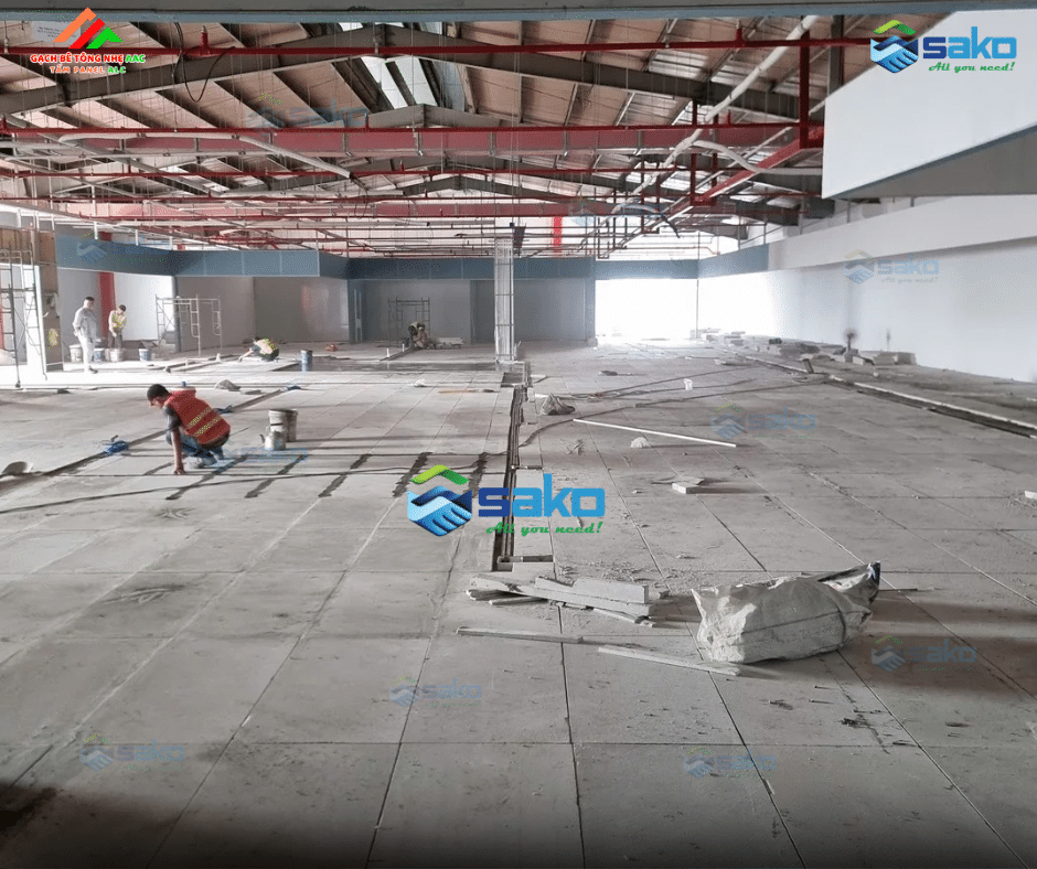 - Tấm ALC PANEL kích thước 1200-600-50mm (1 lớp thép D4 gia cường) đôn nền sàn tại xưởng may công nghiệp.