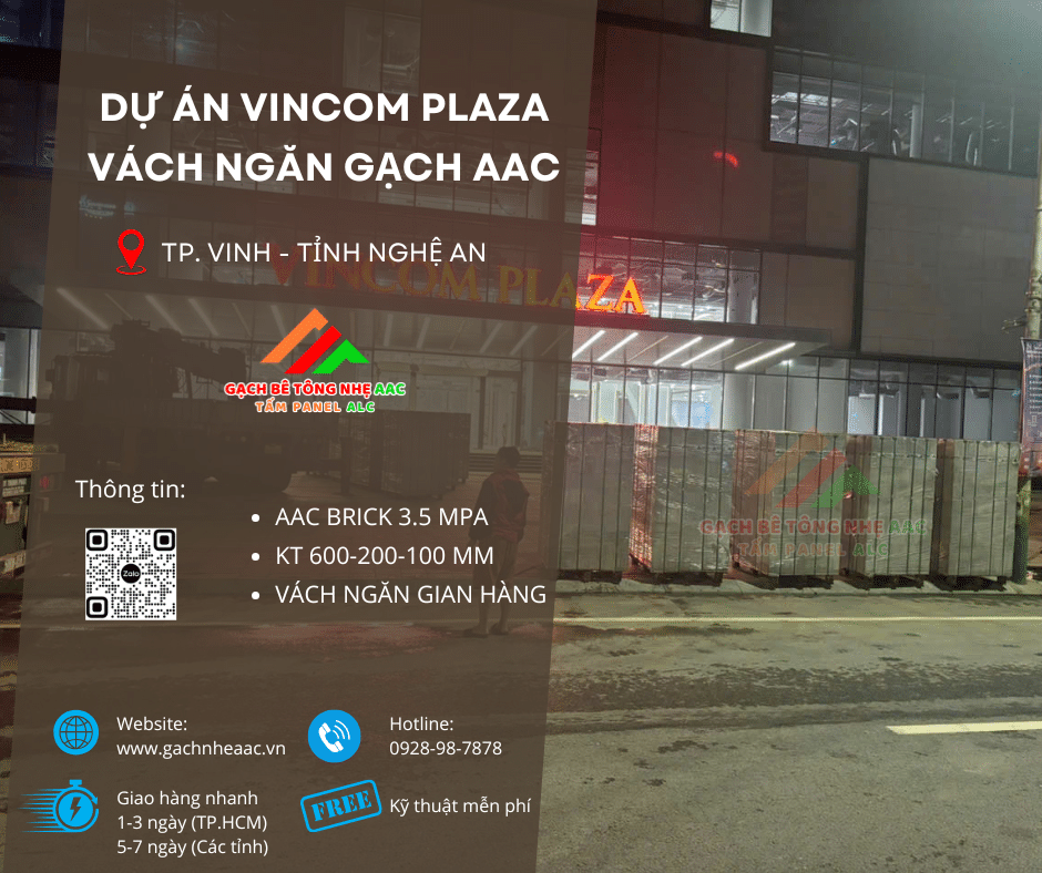 Dự án sử dụng Gạch AAC kích thước 600x200x100mm (Cường độ nén 3.5 MPa)