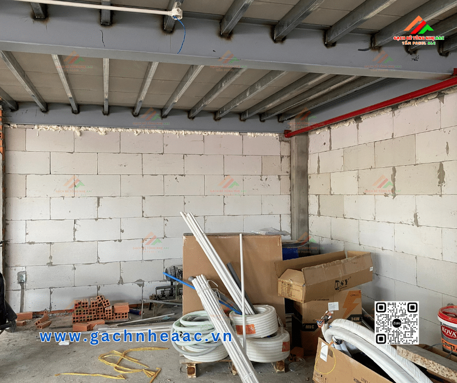 Tại cửa hàng kinh doanh ở Thủ Đức – TP.HCM, gạch AAC kích thước 600x300x100mm được sử dụng cho toàn bộ phần tường bao và vách ngăn.